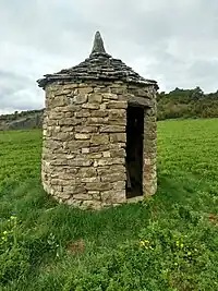 Como es frecuente en la comarca, en los campos se levantan casetas que sirven de abrigo a las personas y de almacén de aperos agrícolas. Están construidas con sillarejo, a hueso o con argamasa de barro; no suelen tener ventanas y cuando existe son de pequeño tamaño. Por su parte, la puerta es adintelada y está cubierta por una piedra rectangular de mayor tamaño que el resto.