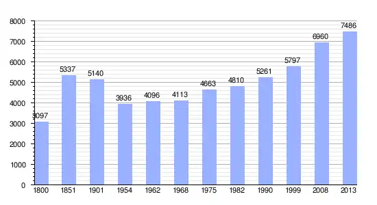 | Gráfica de evolución demográfica de Les Avenières-Veyrins-Thuellin entre 1800 y 2013 |