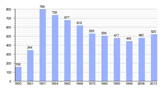 Los datos demográficos contemplados en este gráfico de la comuna de Les Cerqueux-sous-Passavant[4] se han cogido de 1800 a 1999 de la página francesa EHESS/Cassini, y los demás datos de la página del INSEE.[5]