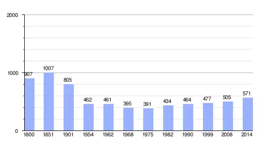 | Gráfica de evolución demográfica de Les Coteaux-Périgourdins entre 1800 y 2014 |