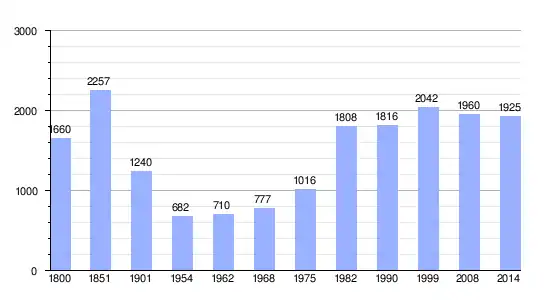 | Gráfica de evolución demográfica de Les Deux-Alpes entre 1800 y 2014 |