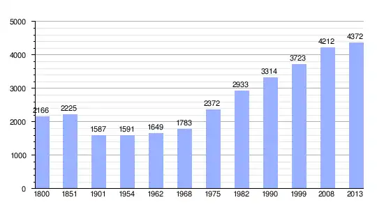 Los datos entre 1800 y 2013 son el resultado de sumar los parciales de las dos comunas que forman la nueva comuna de Les Garennes-sur-Loire, cuyos datos se han cogido de 1800 a 1999, para las comunas de Juigné-sur-Loire[4] y Saint-Jean-des-Mauvrets[5] de la página francesa EHESS/Cassini. Los demás datos se han cogido de la página del INSEE.[6]