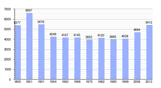 Los datos entre 1800 y 2013 son el resultado de sumar los parciales de las siete comunas que forman la nueva comuna de Les Hauts-d'Anjou, cuyos datos se han cogido de 1800 a 1999, para las comunas de Brissarthe,[4] Champigné,[5] Cherré,[6] Contigné,[7] Marigné,[8] Querré[9] y Sœurdres[10] de la página francesa EHESS/Cassini. Los demás datos se han cogido de la página del INSEE.[11]