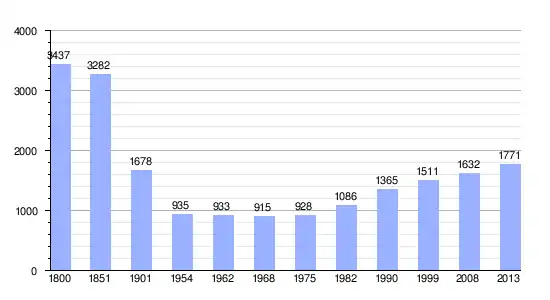 Los datos entre 1800 y 2013 son el resultado de sumar los parciales de las dos comunas que forman la nueva comuna de Les Monts-d'Andaine, cuyos datos se han cogido de 1800 a 1999, para las comunas de La Sauvagère[4] y Saint-Maurice-du-Désert[5] de la página francesa EHESS/Cassini. Los demás datos se han cogido de la página del INSEE.[6]