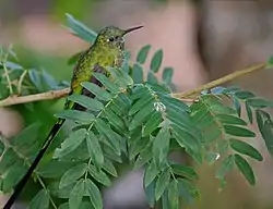 El colibrí colilargo menor,[2] también llamado colibrí coludo verde o cometa coliverde[3] (Lesbia nuna), es una especie de ave de la familia Trochilidae, orden Apodiformes.