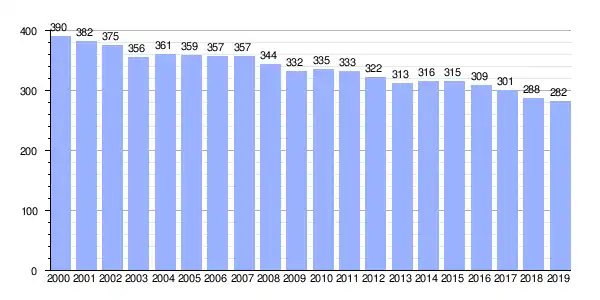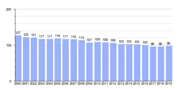 | Gráfica de evolución demográfica de Lesende (lugar) entre 2000 y 2019 |