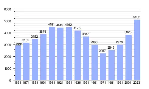 Gráfica de evolución demográfica de Lesignano de' Bagni entre 1861 y 2023