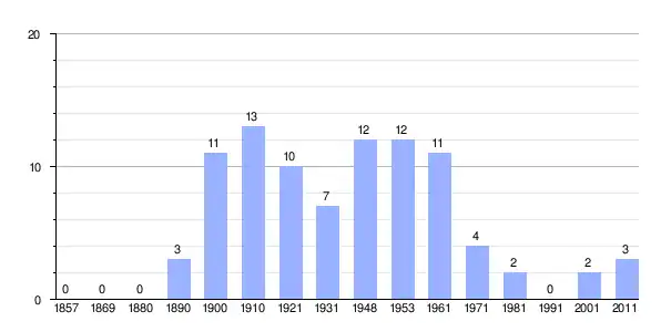 Según los censos de población de la oficina estadística de Croacia.[5] |