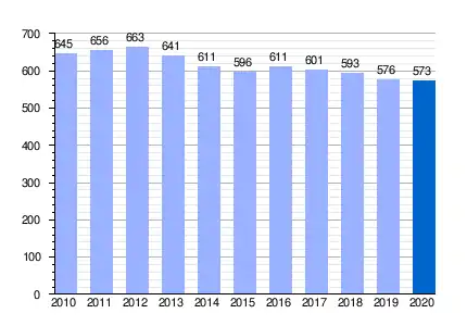 | Gráfica de evolución demográfica de Lestrove entre 2010 y 2020 |