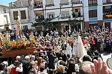 - Domingo de Resurrección: donde se celebran las conocidas Cortesías en la Plaza Mayor y una soltada de palomas blancas. La procesión empieza a las 11:30 más o menos; primero sale Nuestra Señora de los Dolores vestida de luto, pasa por detrás del Ayuntamiento y por el Arco de las Moreras y sube hasta la Plaza Mayor. A la vez Nuestro Padre Jesús Resucitado, sale también de dicha iglesia hasta la Plaza Mayor donde se produce El Encuentro, seguido del Himno de España.