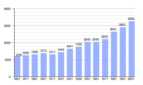 | Gráfica de evolución demográfica de Levate entre 1861 y 2001 |