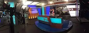 - La Voz de América (VOA), una red de radio, televisión e Internet que transmite en todo el mundo, destinada a la recepción fuera de los Estados Unidos.