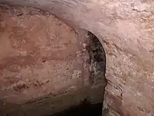 Vista parcial de la cavidad inferior del nevero del Palacio de los condes de Osorno"En el llamado salón de los azulejos, planta baja del referido palacio, a poco más de un metro de altura y junto a uno de sus rincones, se abre una ventana que comunica con el vano... Aboca dicho vano, que recuerda el hueco destinado a un diminuto ascensor, en un departamento subterráneo situado exactamente bajo el mencionado salón, y en él aparecen abiertos un pozo bastante profundo y una especie de silo o habitación cuadrada empotrado en el suelo, de varios metros de profundidad y paredes lisas, sin más que unos pequeños agujeros abiertos en dos de sus ángulos, que inducen a pensar sirvieron alguna vez para sujetar travesaños de hierro o madera y poder así colocar encima un vulgar camastro. Si una cesta u otro artefacto cualquiera atado con una cuerda se deja deslizar por el hueco en cuestión a través de la referida ventana, cae precisa e irremisiblemente en la pieza empotrada y anteriormente descrita, de la cual además no es posible salir sin el auxilio de otra persona, y ello en todo caso valiéndose de una soga, maroma o escalera de mano. Tales circunstancias y características inducen a creer que fue un aljibe, más probablemente un pozo para nieve, o que nos encontramos ante una de aquellas auténticas mazmorras de la Edad Media, cuya existencia ha sido tan comentada por cronistas e historiadores de todos los tiempos"[7]