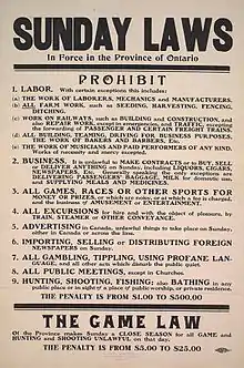 Un referéndum en Toronto en 1950 permitió que los domingos sólo se jugaran profesionalmente deportes de equipo. Las representaciones teatrales, las proyecciones de películas y las carreras de caballos no estuvieron permitidas hasta la década de 1960. [32]