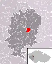 Se encuentra ubicada al norte de la región, en la cuenca hidrográfica del río Berounka —un afluente izquierdo del río Moldava que, a su vez, lo es del Elba—, y cerca de la frontera con la región de Bohemia Central.[1]