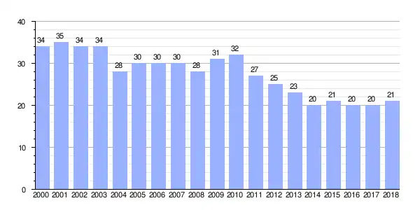 | Gráfica de evolución demográfica de Liñares entre 2000 y 2018 |