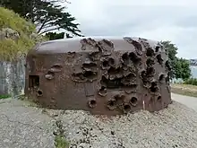 ![]() La dotación estadounidense de un cañón posa simulando un disparo hacia la isla del Grand Bé desde la muralla de Saint-Malo. | ||||