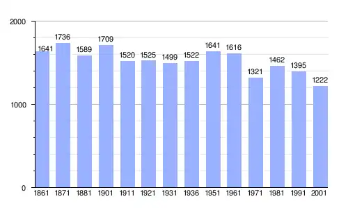 | Gráfica de evolución demográfica de Liberi entre 1861 y 2001 |