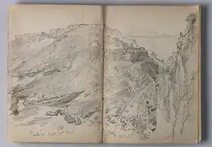 - John Constable (inglés 1776–1837) creía en la importancia del trabajo de la vida y basado en sus pinturas en sus bocetos y dibujos de paisajes. Algunos de sus bocetos fueron hechos de aceite mientras que otros se encontraban en libros pequeños de bocetos. Este es un ejemplo libro de bocetos en el Victoria y Albert Museum