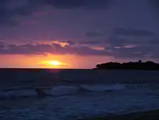 Puesta de sol en Ogliastro Marina con la pineda de Licosa a un lado.