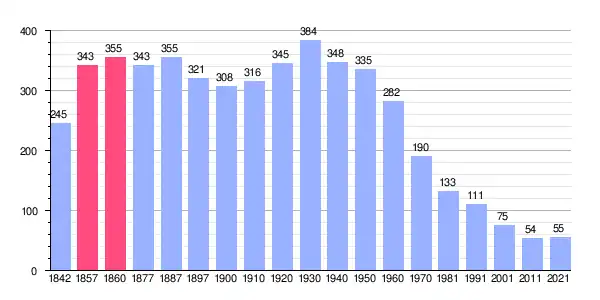| Gráfica de evolución demográfica de Lidón[4][5] entre 1842 y 2021 |