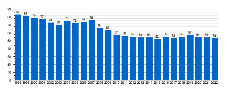 | Gráfica de evolución demográfica de Lidón[6] entre 1998 y 2022 |