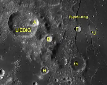 Por convención estos elementos son identificados en los mapas lunares poniendo la letra en el lado del punto medio del cráter que está más cercano a Liebig.