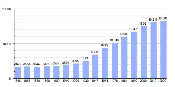 Todos los datos históricos relativos al actual municipio, el siguiente gráfico refleja su evolución demográfica, incluyendo municipios después de efectuada la fusión el 1 de enero de 1977.
