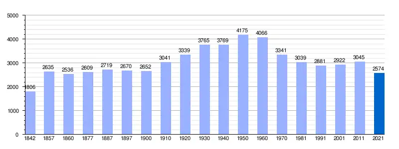 Población de derecho (1842-1991, excepto 1857 y 1860 que es población de hecho) o población residente (2001-2011) según los Censos de Población desde 1842. Población según el padrón municipal de 2021 del INE. |