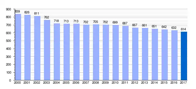 | Gráfica de evolución demográfica de Lillo del Bierzo[6] entre 2000 y 2017 |