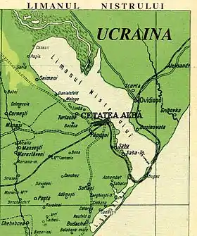 - Esta obra contiene una traducción derivada de «Dniester Liman» de Wikipedia en inglés, publicada por sus editores bajo la Licencia de documentación libre de GNU y la Licencia Creative Commons Atribución-CompartirIgual 4.0 Internacional.