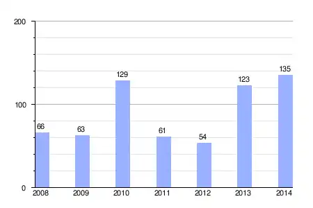 | Gráfica de evolución de la deuda viva del ayuntamiento entre 2008 y 2014 |