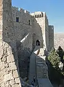 El castillo de los caballeros de San Juan, construido antes de 1317 sobre antiguas fortificaciones bizantinas. Las murallas y las torres siguen la natural conformación del acantilado. Una torre pentagonal en el lado sur domina el puerto. Había una gran torre redonda al este enfrente del mar y dos más, una redonda y la otra en una esquina, en el lado noreste del recinto. Actualmente se conservan una de las torres de la esquina sureste y una del este.