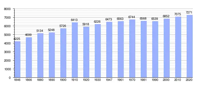 Todos los datos históricos relativos al actual municipio, el siguiente gráfico refleja su evolución demográfica, incluyendo municipios después de efectuada la fusión el 1 de enero de 1977.