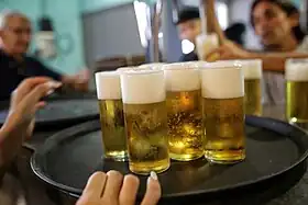 Este modo de beber cerveza, que comenzó en la década del 30 del siglo XX, se realiza en un vaso de estilo stange (liso, sin textura), usualmente empleado para cervezas de estilo pilsen. Con los años, esta costumbre cervecera santafesina se extendió al resto de la región y está vigente hasta la actualidad.