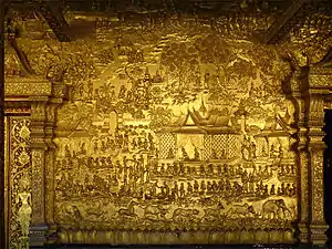 La religión y la enseñanza religiosa es un tema recurrente para gran parte de la literatura de Laos a lo largo de su historia. Laos es predominantemente budista theravada, que fue la religión del estado en el Reino de Lan Xang desde la época del rey Photisarath en la década de 1520. El rey Fa Ngum, el fundador de Lan Xang, trajo a los monjes Theravada y al Phra Bang (imagen protectora de Laos) con él cuando estableció Lan Xang en 1353, según las tradiciones populares. Los principales textos religiosos del budismo theravada son conocidos como el tripitaka, que incluyen:[17]