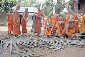 La educación monástica ha sido fundamental para la sociedad de Laos desde el período de Lan Xang hasta la actualidad. La escuela monástica más antigua de Laos fue fundada por el rey Vixun en 1503. En todas las áreas de lo que hoy es el sureste de Birmania, el Sipsongpanna en China, el norte y noreste de Tailandia, el noroeste de Vietnam y Laos, era común para los monjes, los textos e incluso las bibliotecas completas, moverse entre monasterios. La realeza en Laos, y el sudeste asiático en general, fue reforzada y legitimada por el patrocinio del sangha y actos de mérito religioso. A cambio, los maestros más prolíficos con patrocinio real atrajeron a patrones ricos, artistas y peregrinos.