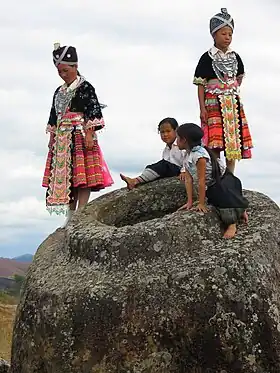 Los estudios antropológicos de estas sociedades y el recuento de primera mano de los miembros de estos grupos se han convertido en una parte cada vez mayor de la literatura moderna sobre Laos, y son una fuente de estudio etnográfico cada vez mayor. Cada grupo mantiene aspectos únicos de su cultura narrativa. Por ejemplo, los Hmong, una división de los Mien que emigraron a Laos en el siglo XIX desde China, son famosos por sus «telas de la historia». Estas telas, que varían en tamaño hasta varios pies cuadrados, utilizan figuras para representar historias y el folclore de los Hmong en una forma narrativa.[18]