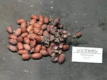 Las semillas que tiene forma de una bellota alargada contienen una gran cantidad de tanino y son, por tanto, aptas para el consumo humano solo después de quitar la amargura por remojo y cocinarlas para que sean comestibles.