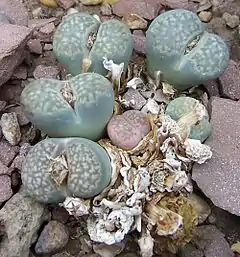 Lithops: nombre genérico que deriva de las palabras griegas: "lithos" (piedra) y "ops" (forma).