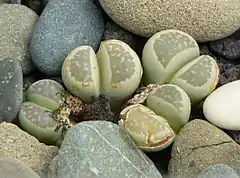 Lithops: nombre genérico que deriva de las palabras griegas: "lithos" (piedra) y "ops" (forma).