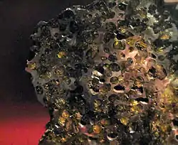 Su nombre proviene del griego y significa "mitad de hierro".[1] Están formadas por partes casi iguales de silicatos piroxeníticos y basálticos, y por metales de Fe y Ni, con poca cantidad de olivino,[18] que se presenta en forma de brechas, lo que implica que son el resultado de múltiples impactos.[19] La composición del metal presente es bastante uniforme (al contrario de lo que sucede en los meteoritos metálicos), y la composición de la fracción silicatada es muy parecida a la de las howarditas (un tipo de acondritas), pero con diferencias químicas que parecen indicar que están mezcladas con otro tipo de rocas.[19]
