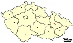 Se encuentra ubicada en el centro de la región, sobre la parte oriental de los montes Sudetes, a poca distancia de la orilla del río Morava —un afluente izquierdo del Danubio— y de la frontera con la región de Moravia-Silesia.[1]