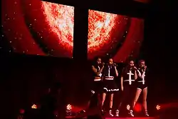 ![]() Little Mix actuando en Leeds durante su The Confetti Tour en 2022. De izquierda a derecha: Jade Thirlwall, Perrie Edwards y Leigh-Anne Pinnock. | ||