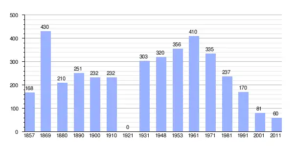| Gráfica de población de Ljubostinje 1857-2011 |