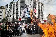Durante el Día de Al-Quds celebrado en Irán y otros países; se llevan a cabo grandes mítines y marchas, donde altos líderes pronuncian discursos que frecuentemente resultan en cánticos de "Muerte a Israel, Muerte a Estados Unidos." Las banderas israelíes, ya sean pintadas en el suelo o distribuidas para que la gente las pise, son objeto tanto de pisoteo como de quema. Además, las exhibiciones que presentan maquetas de misiles balísticos muestran lemas como "Muerte a Israel". [36] [37]