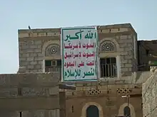 El eslogan del Movimiento hutí, un grupo político y militante islamista en Yemen, reza: "Dios es el más grande, Muerte a Estados Unidos, Muerte a Israel, Maldición sobre los judíos, Victoria para el Islam"[31] , [32]