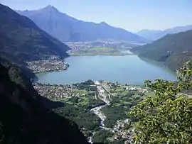 ![]() Vista de la llanura de España y el lago de Mezzola desde el sendero del valle de Ratti. | ||