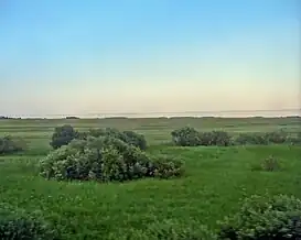La llanura siberiana occidental vista desde el ferrocarril transiberiano en las afueras de Tatárskaya