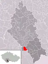 Está ubicada en el centro-sur de la región, en la zona de la selva de Bohemia, a poca distancia al sur de la ciudad de Praga y de la orilla del río Moldava —el más largo del país, afluente del río Elba—, y al norte de la frontera con Austria.